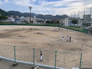 会場は門司球場です。スコアボードも表示され、アナウンスも行われます。4番ピッチャーN君‼