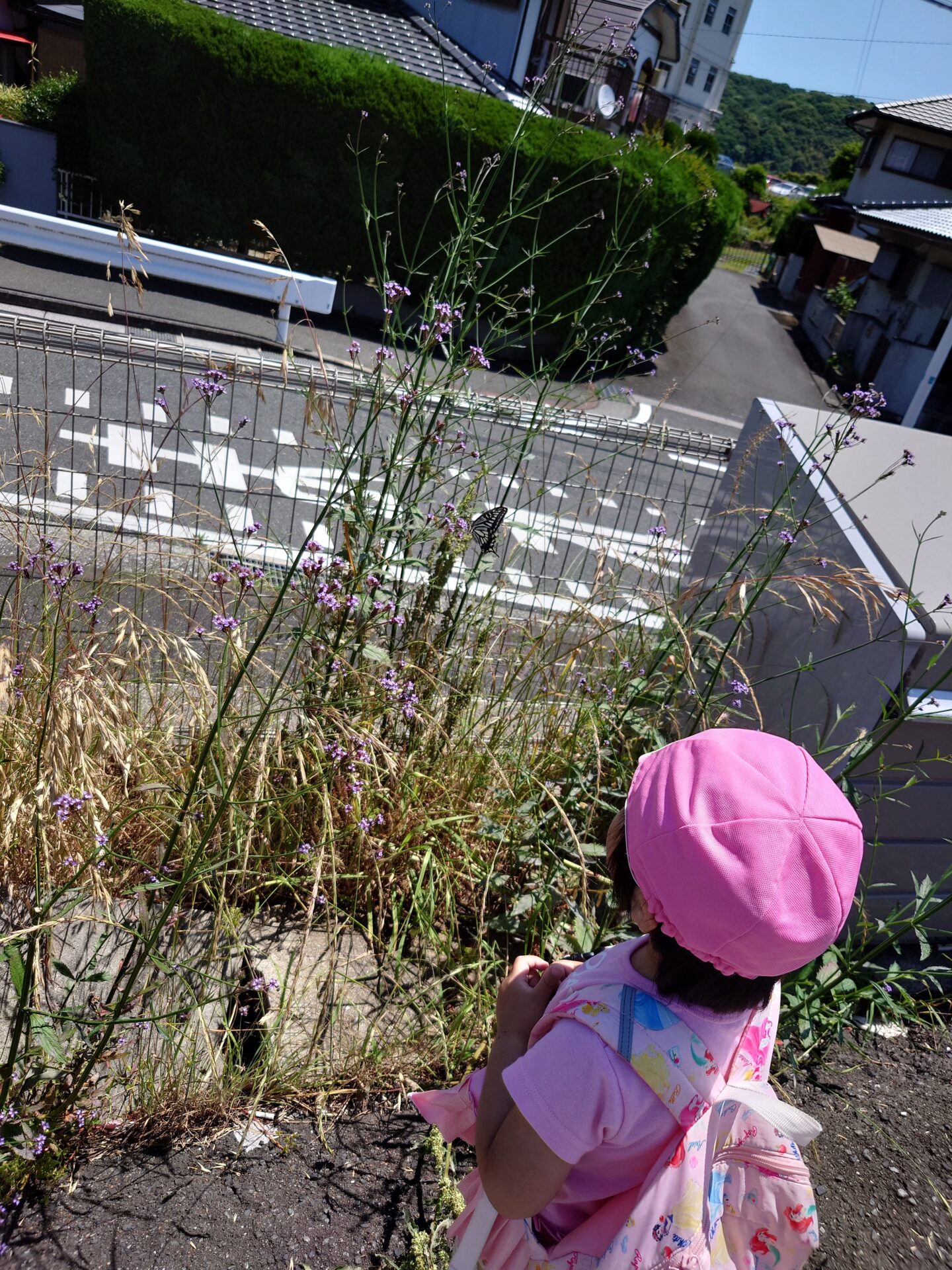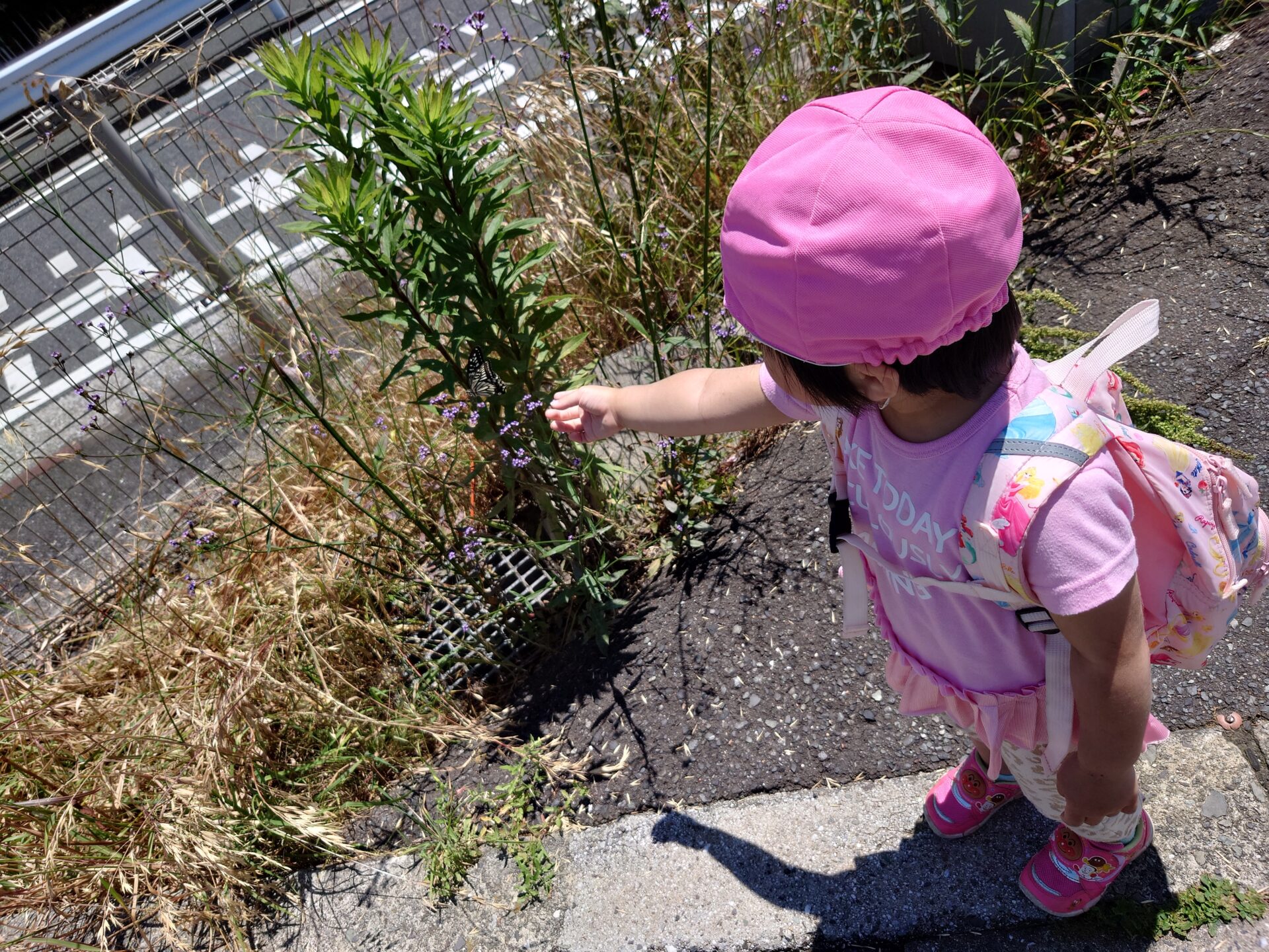 お散歩をして学園の方に帰っている途中、女の子の近くに蝶々がひらひらと飛んできて、お花にとまりました。蝶々さん、お花の蜜を飲んでるね、と話しながら、蝶々を観察していました。すると、2歳児さんが蝶々に手を伸ばし、「よしよし」と言いながら、蝶々に触ることができました!触った後、「蝶々さん、ふわふわしてた」と言っていました。とても感動したできごとでした😊