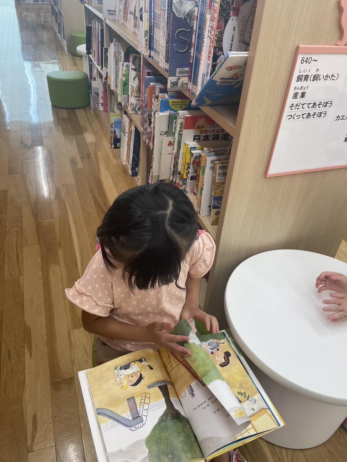 「幼稚園にない絵本がたくさんあるー!」 「図書館は静かにね、」