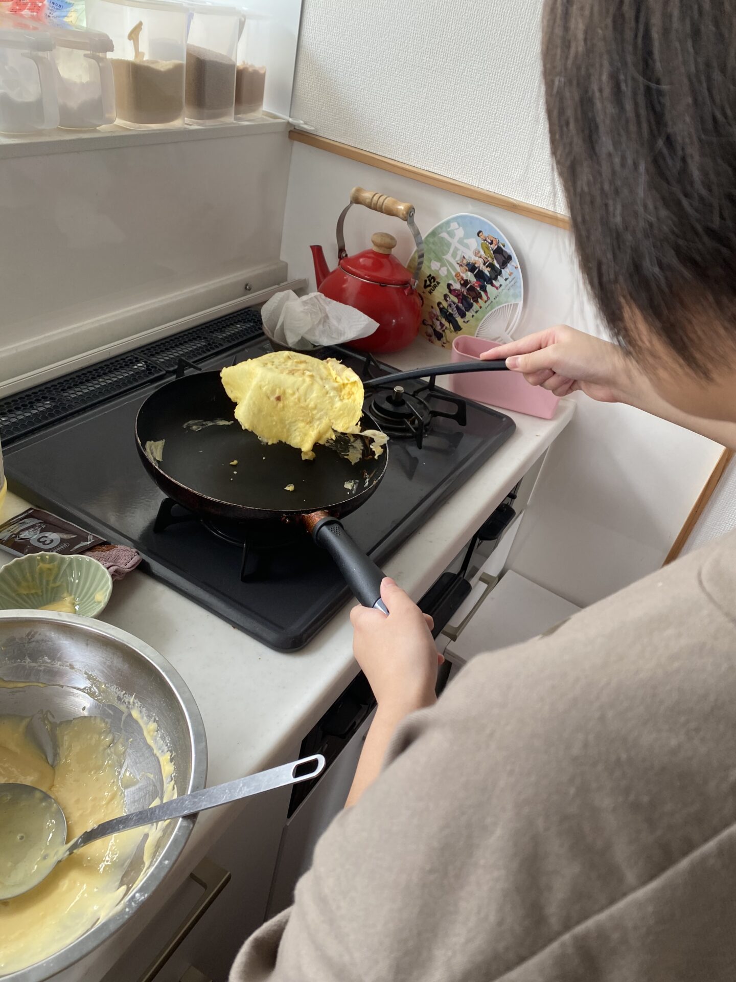 「一から作る!」とクレープの生地を丁寧に広げ、8枚分作りました*’▽’
