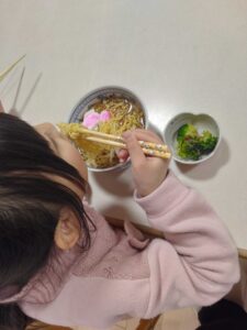 お休みの日の昼ごはんにご寄付いただいた袋麺を作って食べました(*’ω’*)