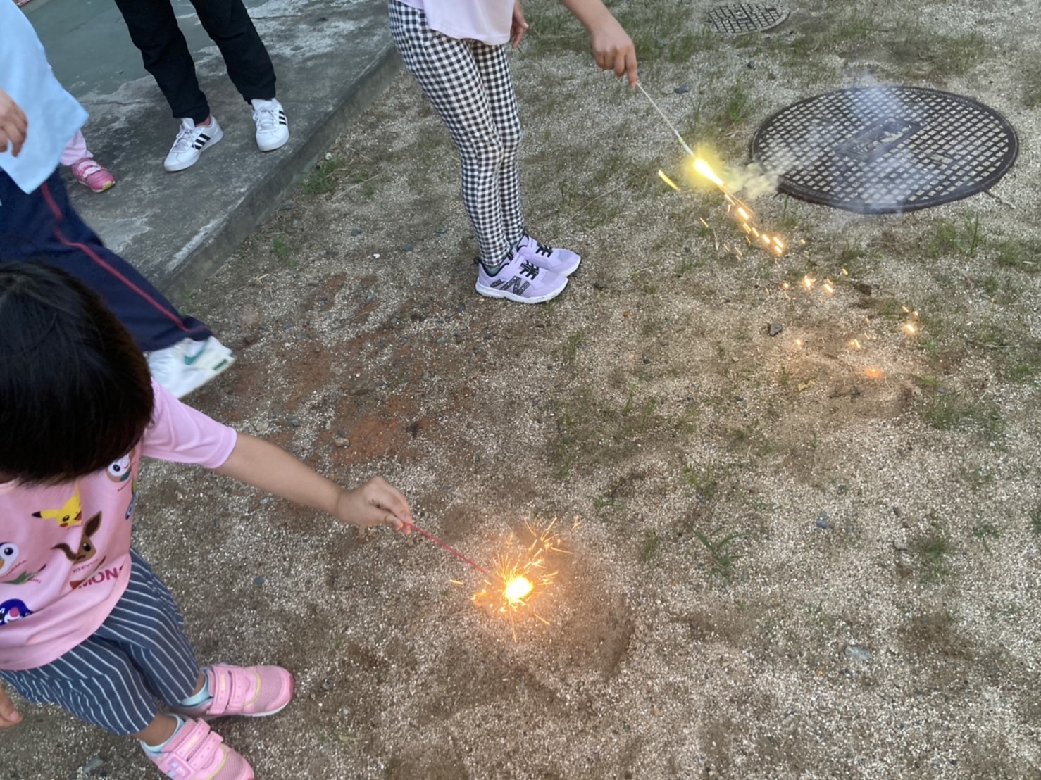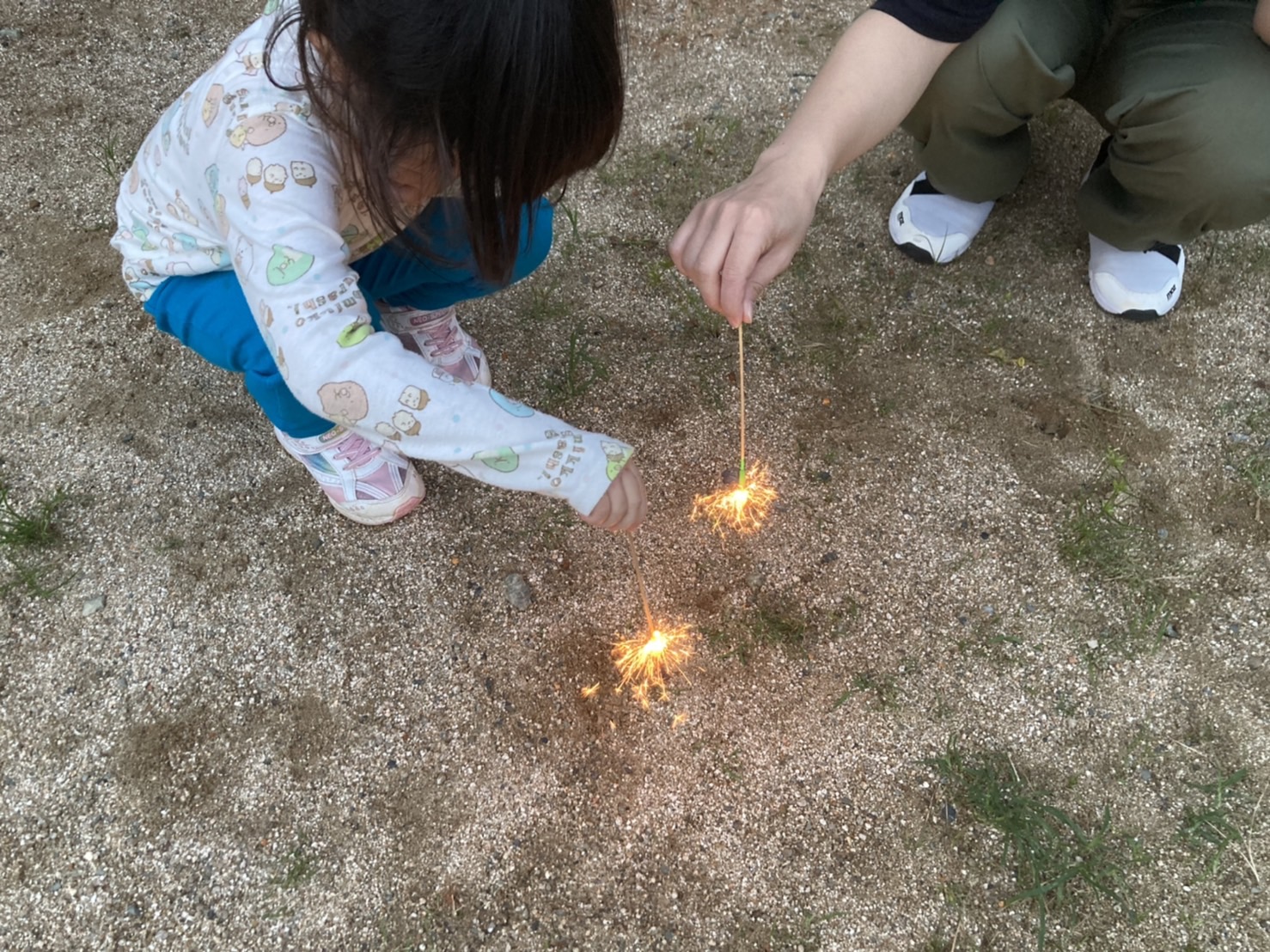 初めは怖がっていた幼児さんがいましたが、慣れてくると自分で手持ち花火を持ってできました😆