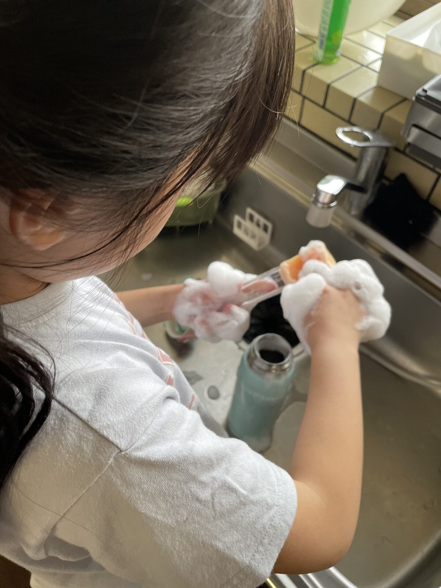 最近は、小学三年生の女の子も、帰ってきたら自分で水筒と箸を洗ってくれています👏