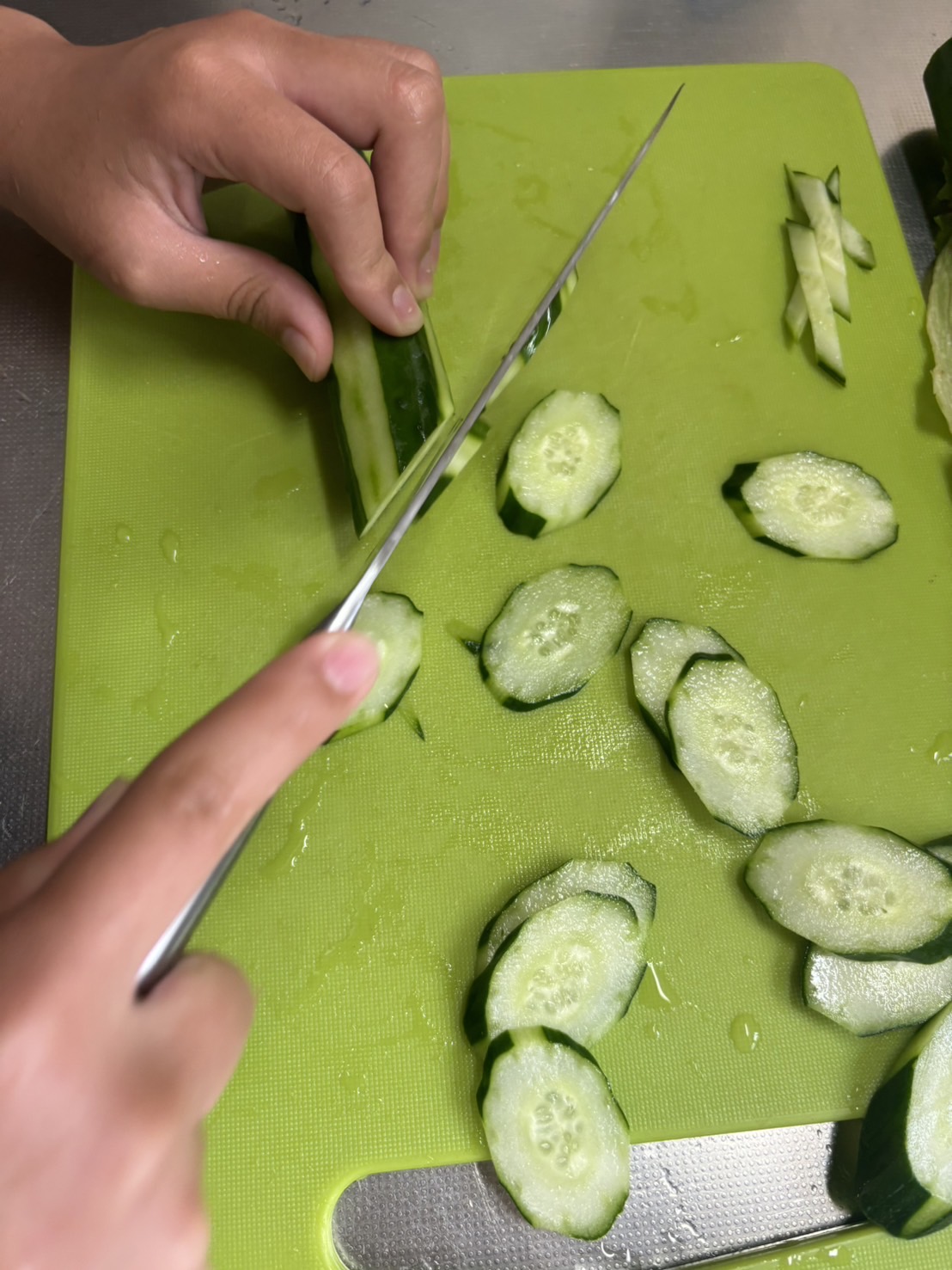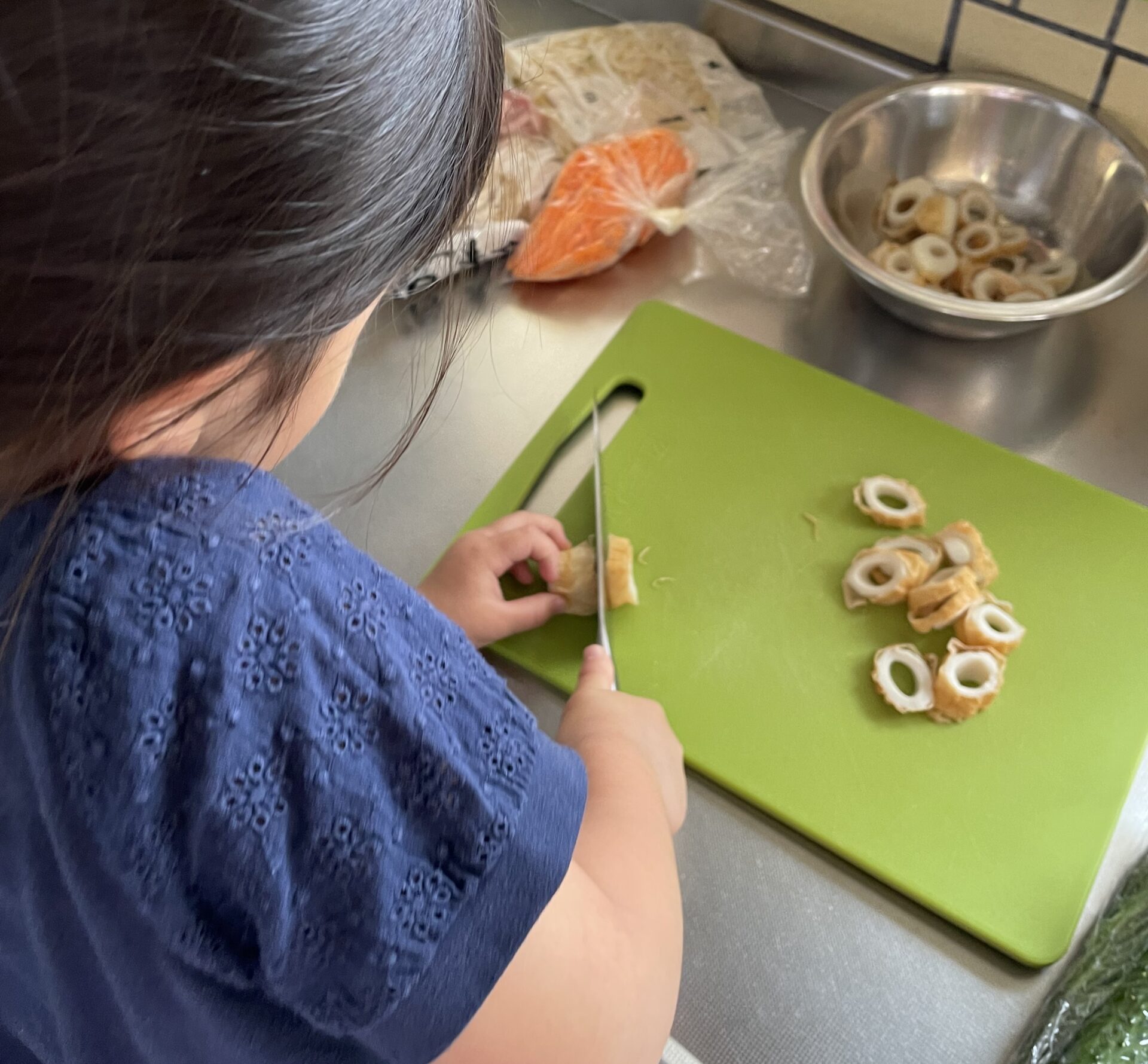 手を切らないように気を付けてちくわときゅうりを切ってくれました🥒