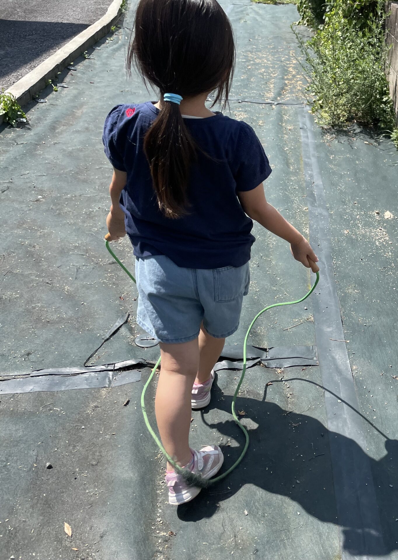 とても天気が良い日だったので外に行き縄跳びをしました!