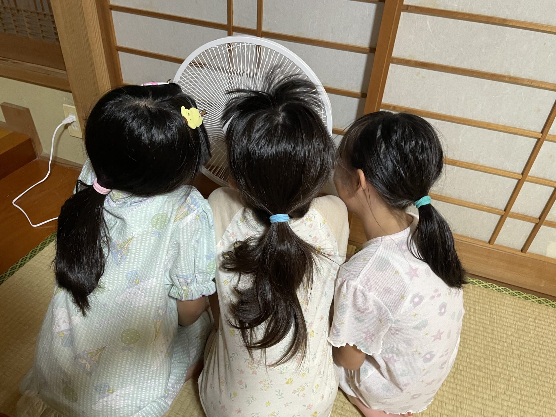 こちらも寄付でいただいた、扇風機に集まる小学生の様子です(* ´艸`)