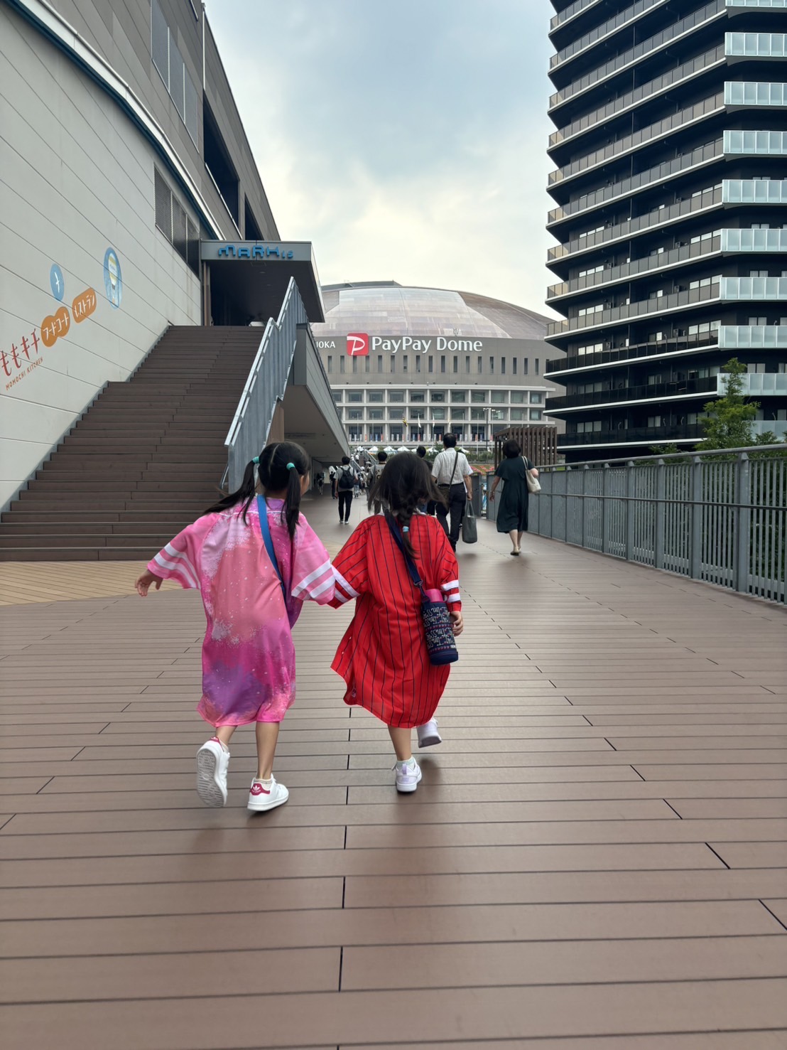 小学生は人混みの中、手をつないで頑張って広いドームの中デザートを買いに行きました!