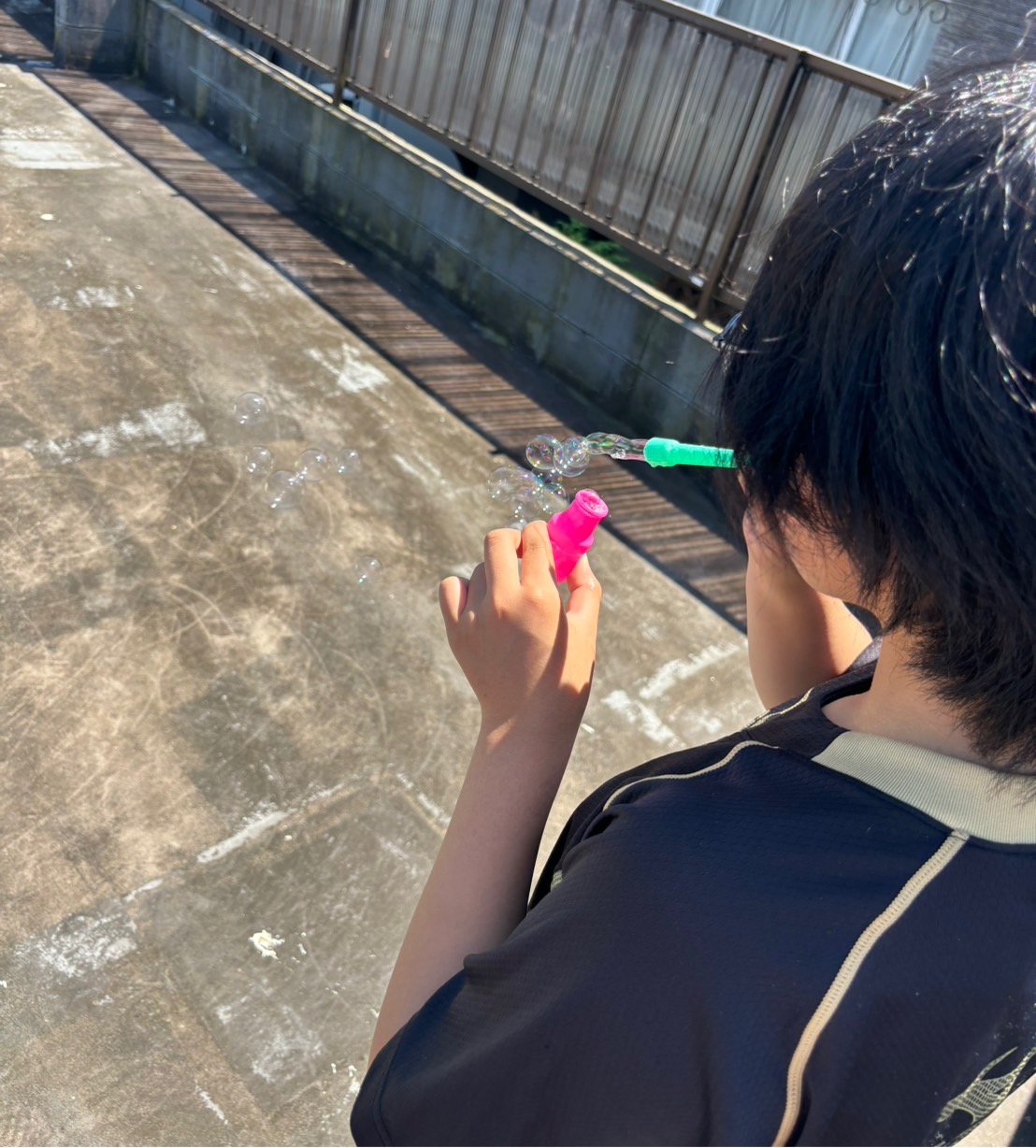 天気が良い日は外でシャボン玉をする中学生も☀